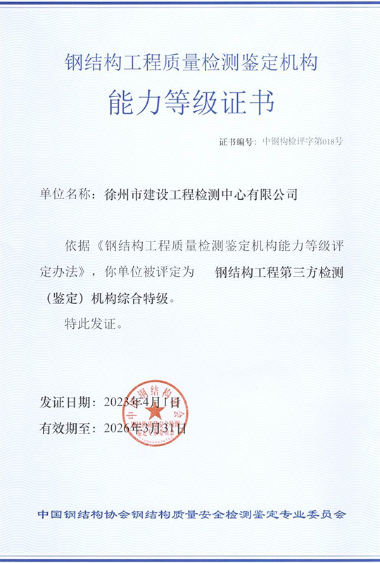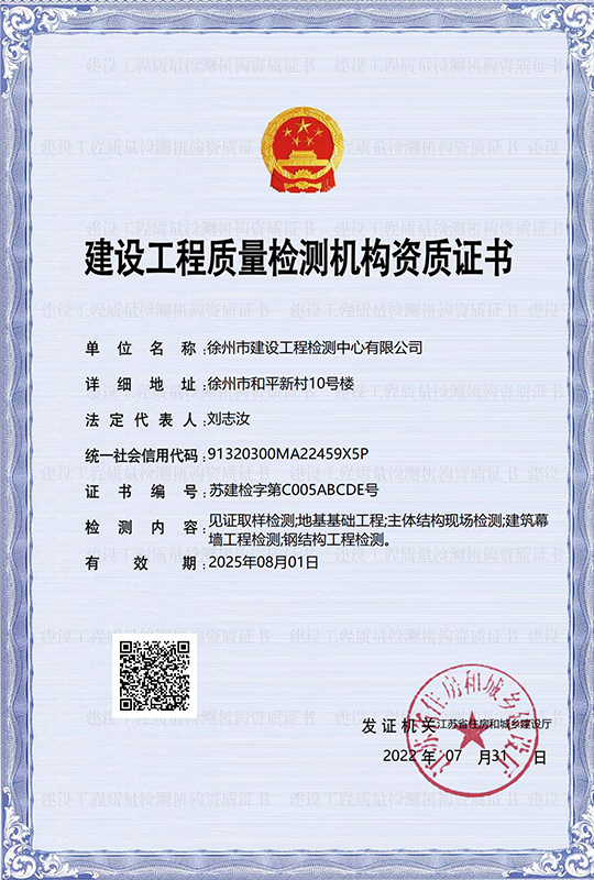 徐州市建設工程檢測中心有限公司(以下簡稱徐建檢測公司)是徐州市產城發(fā)展集團有限公司(以下簡稱產城集團)的全資子公司。徐建檢測公司前身為徐州市建設工程檢測中心,2018年事轉企改制,2020年4月,完成轉企改制資產劃轉工作。 徐建檢測公司是集檢測、檢驗、鑒定、咨詢等技術服務為一體、具有獨立法人資質的綜合性第三方服務機構。公司主要從事建設工程領域相關工程質量檢測及技術咨詢服務,業(yè)務覆蓋地基基礎、建筑材料、建筑結構、鋼結構工程、市政工程、綠色建筑節(jié)能工程、建筑安全與施工設備、建筑防水、建筑水電、裝飾裝修、建筑物防雷、室內環(huán)境、房屋安全鑒定、城市軌道交通工程等專業(yè)領域。......